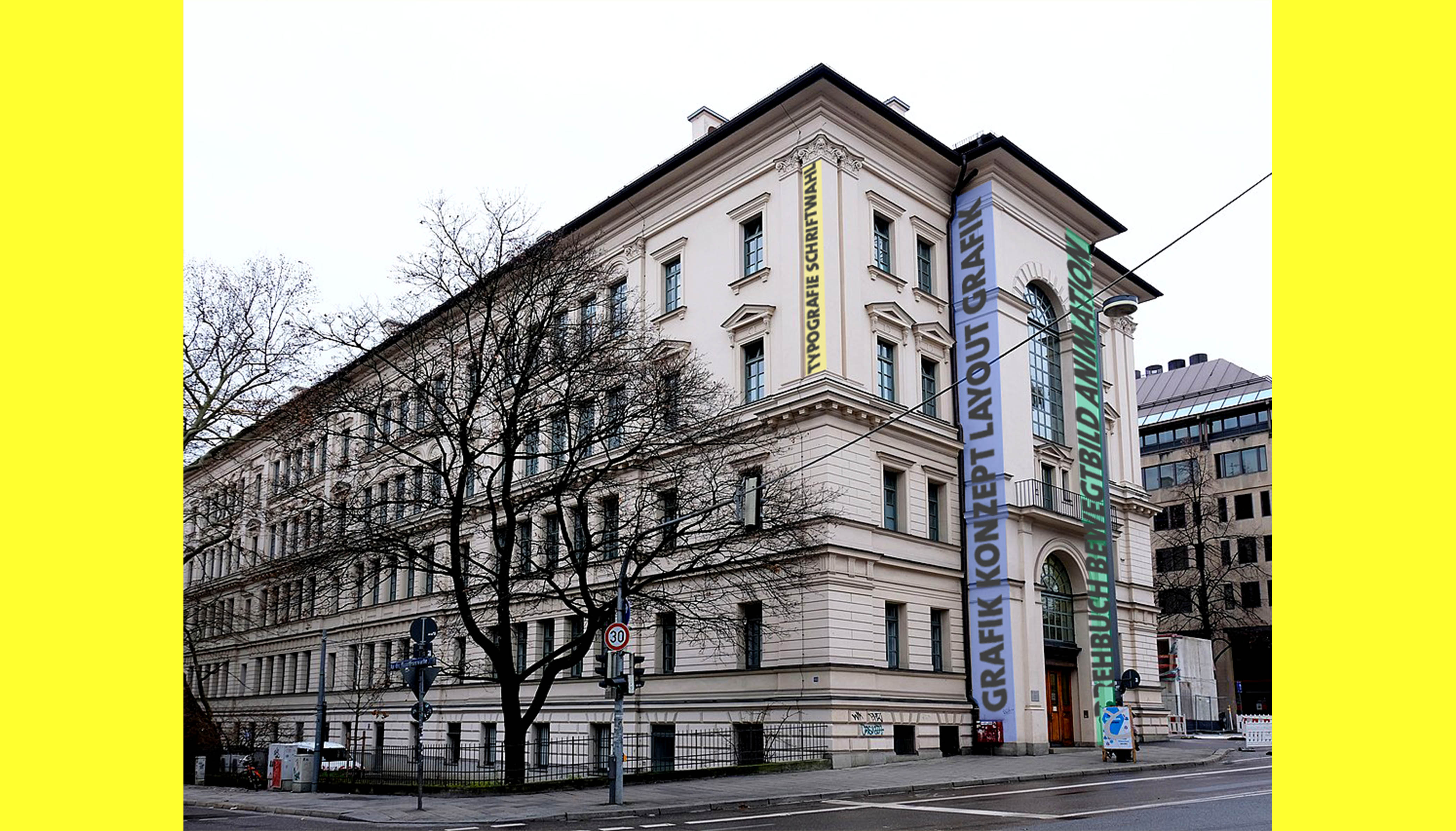 des Schulgebäudes ist ein temporärer Blickfang inmitten Münchens.