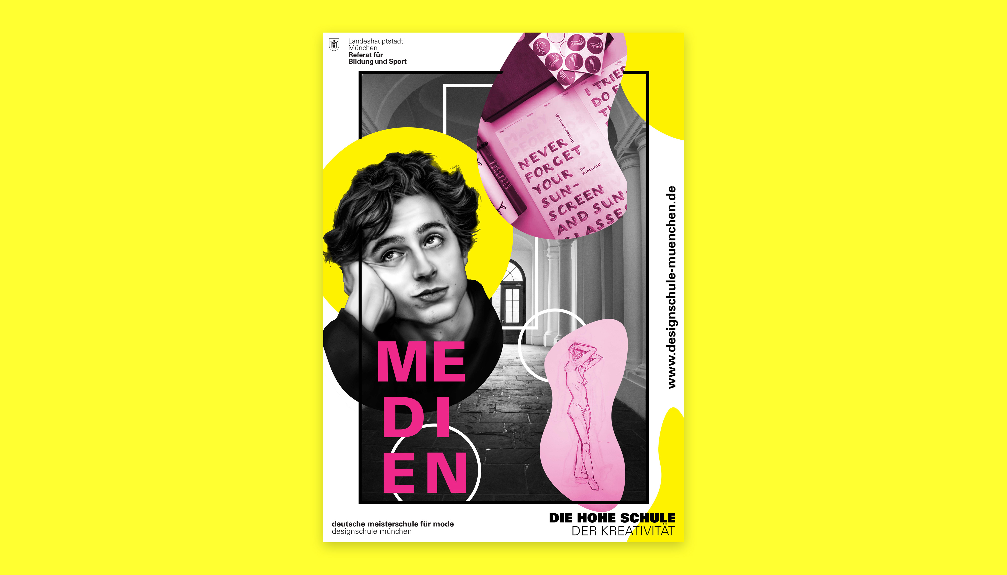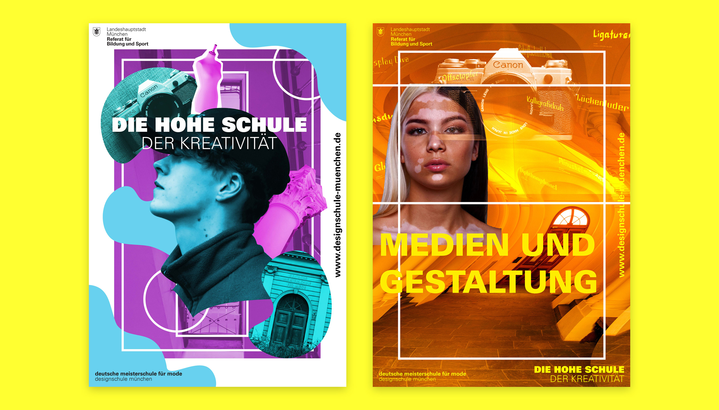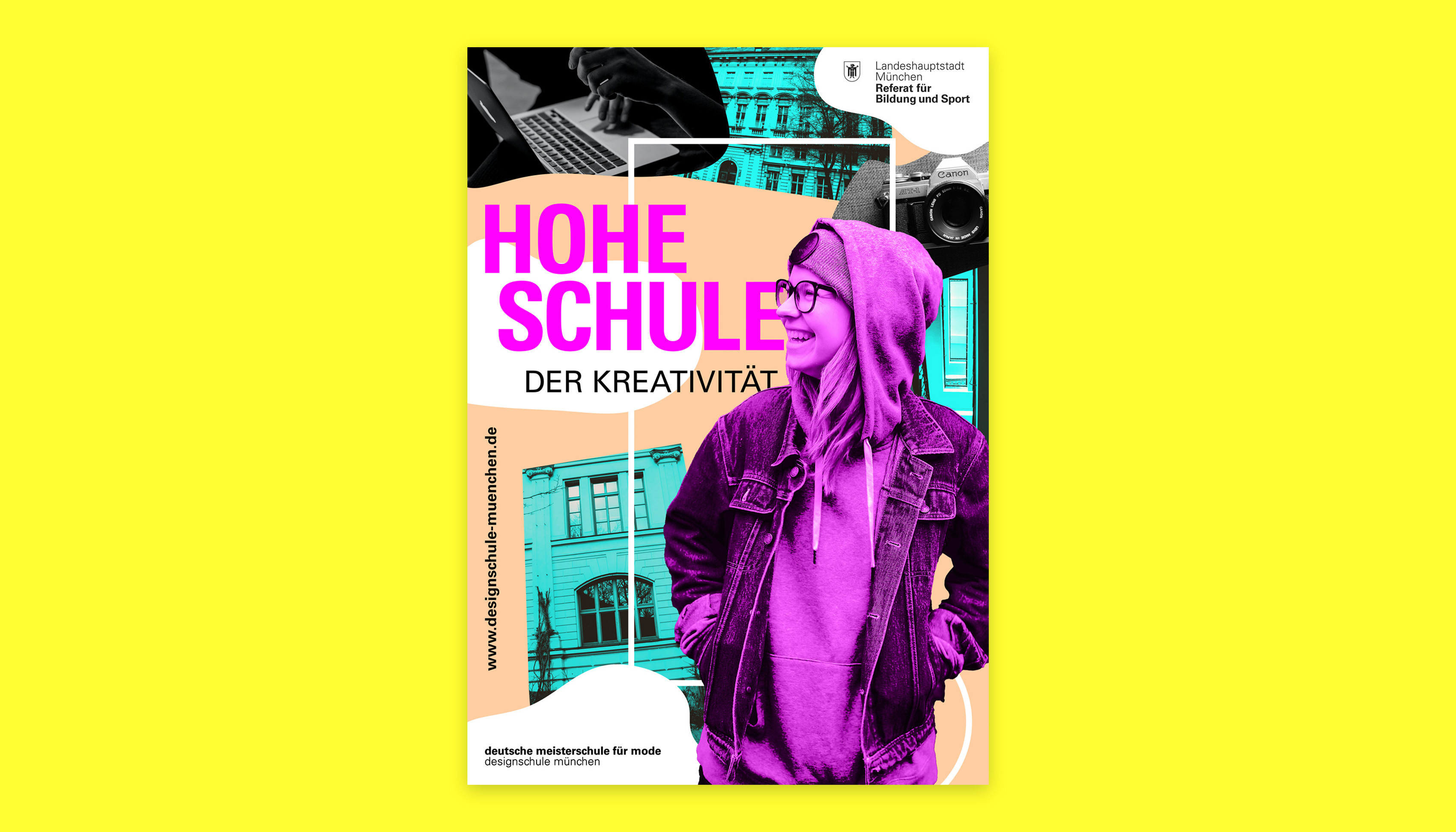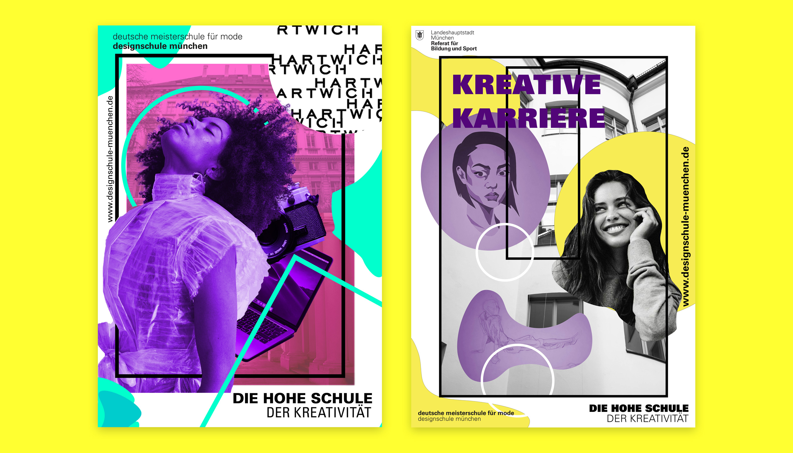 Diese Ebenen sind unabhängig vom verwendeten Stil und Technik des designten Mediums und können variabel eingesetzt und animiert werden. Deswegen ist unser Konzept zeitlos und als langfristige Lösung für das Design der Designschule München gedacht.