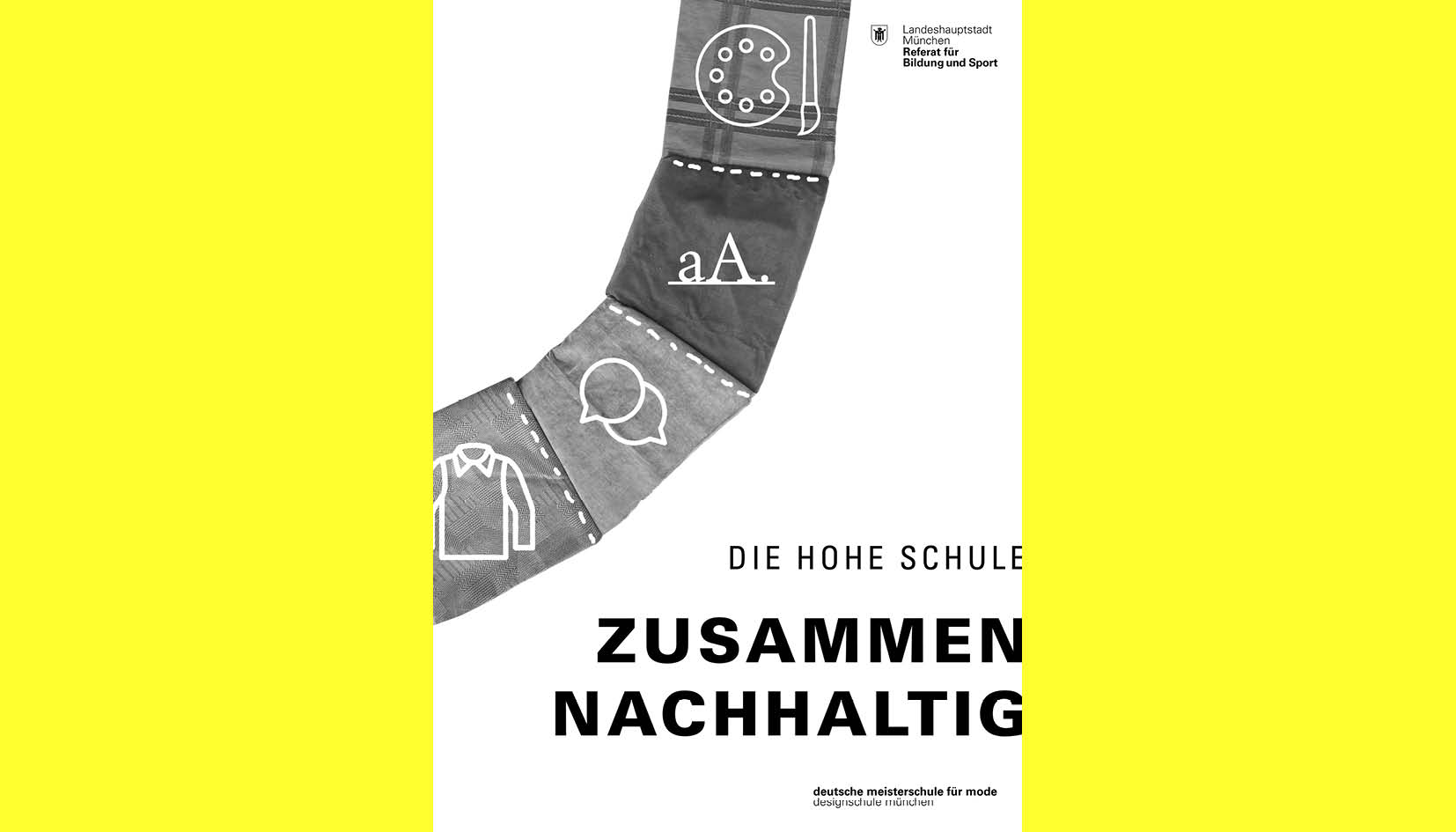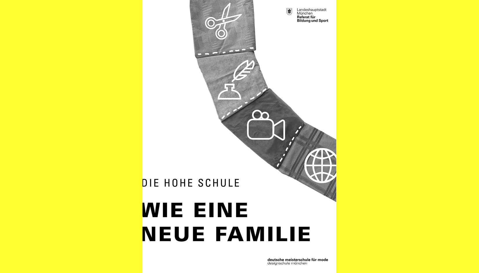 Die Meisterschule für Mode und Design ist in vier Schulen eingeteilt („Fachschule für Modellistik“, „Fachschule für Schnitt und Entwurf“, „Berufsschule für Bekleidung“ und „Berufsfachschule für Kommunikationsdesign“), die alle dasselbe verbindet: Offenheit, Tradition, Nachhaltigkeit und Familiarität. Die Schulen besitzen einen sehr familiären Umgang zwischen Lehrer*Innen und Schüler*Innen. Die verschiedenen Module, die man in seiner Ausbildung wählen kann, das breit gefächerte Angebot der Schule und die engen Beziehungen führen dazu, dass man schnell ein Teil dieser Patchwork-Family wird. Gemeinsam geht man durch die verschiedenen Steps bis man sein Ziel erreicht hat. Wir arbeiten nachhaltig und gehen bedacht mit den Materialien um. Alte Präsentationsmappen, welche man erwerben kann oder Stoffreste, die im Erdgeschoss zum Verschenken liegen, erinnern automatisch an die Nachhaltigkeit der Schule, welches die Wahl des Patchworks erneut unterstreicht. Es liegt an uns, kreativ und innovativ mit diesen Materialien umzugehen, sie neu einzubauen.
